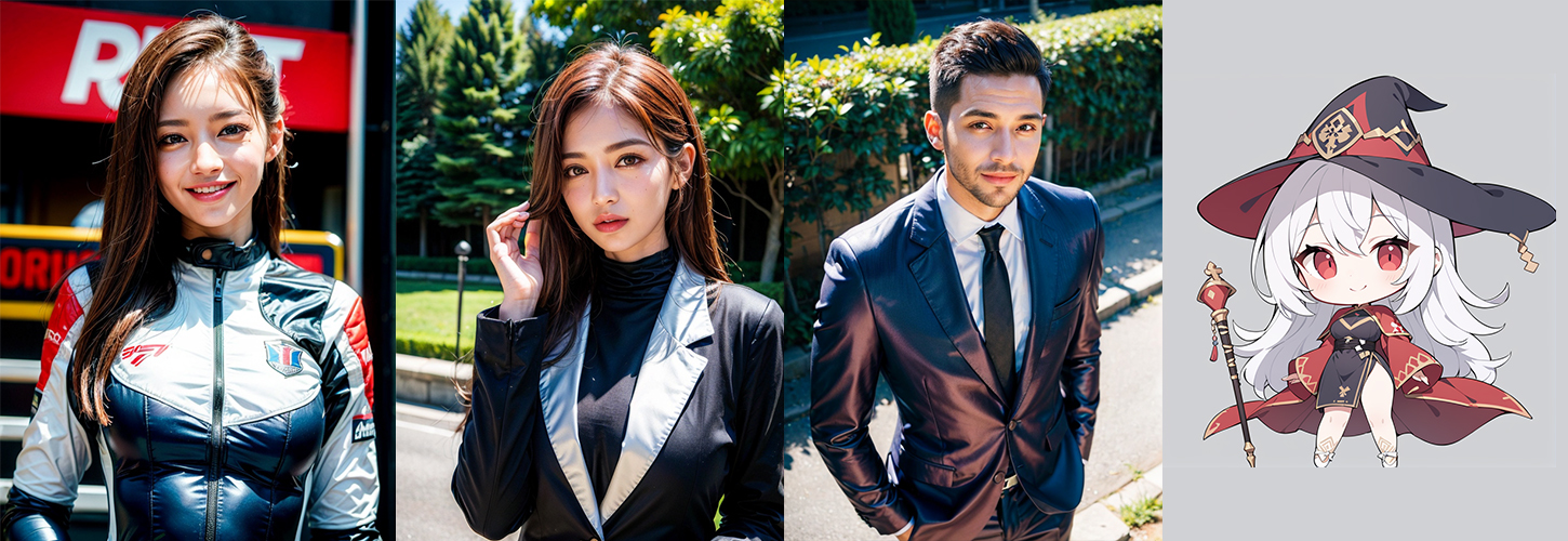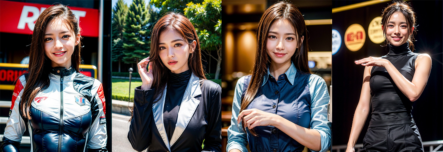 弊社オリジナルノウハウに基づいた顔固定化・キャラクター固定化技術により、独自のキャラクターを独占使用可能。LoRA(Low-Rank Adaptation)の調整も行っております